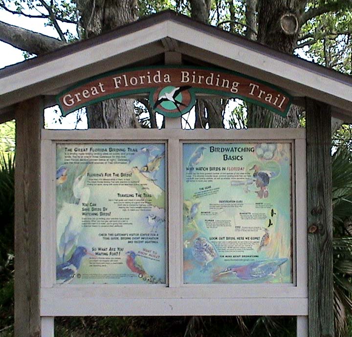 The Merritt Island National Wildlife Refuge is a designated gateway to the East Section of the GFBT, where visitors can find more detailed information and materials than at other Trail sites. Staff members at the Refuge Visitor's Center are available to answer questions and provide information about birding classes and events as well as a Great Florida Birding Trail guide. The Visitor's Center also offers a great selection of field guides and area information. Loaner binoculars are available at the Visitor's Center for anyone to check out. Every Thursday, Saturday and Sunday morning, free birding field trips are led by Refuge volunteers during peak birding season.